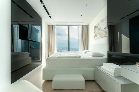 Внутри апартаменты обычно имеют современную планировку, панорамные окна, качественную отделку и развитую инфраструктуру комплекса.