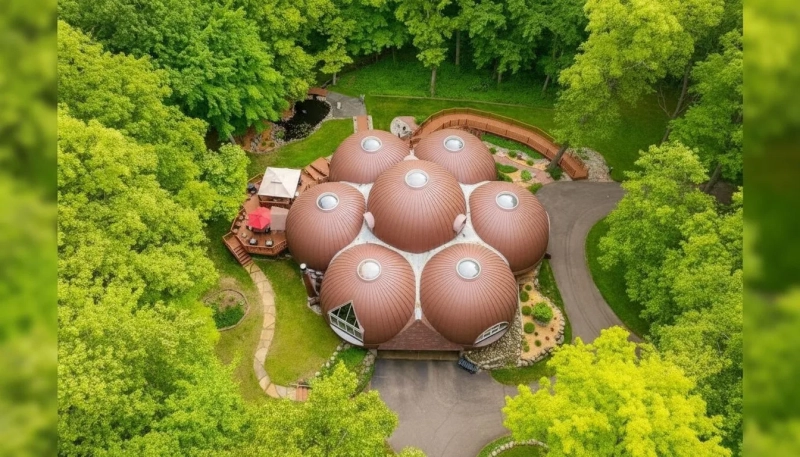 В глубине лесного массива округа Каламазу, штат Мичиган, скрывается объект, который трудно отнести к привычным типологиям частного жилья. Его не спутаешь ни с шале, ни с модернистской виллой, ни с американским ранчо. Этот дом больше напоминает декорацию к научно-фантастическому фильму или экспериментальный макет из будущего, случайно оказавшийся среди деревьев. Речь идёт о так называемом «Луковом доме» — уникальной вилле из семи куполов, выставленной на продажу за 1,9 миллиона долларов.