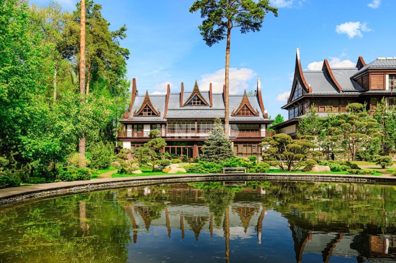 В доме семь спален, гостиная, библиотека, кухня со столовой, зимний сад и терраса, а также спа-зона с большим бассейном и сауной.