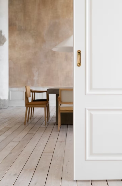 - Двери-купе — отличное решение для экономии пространства. Такие двери идеально подходят для современных коттеджей с ограниченной площадью.