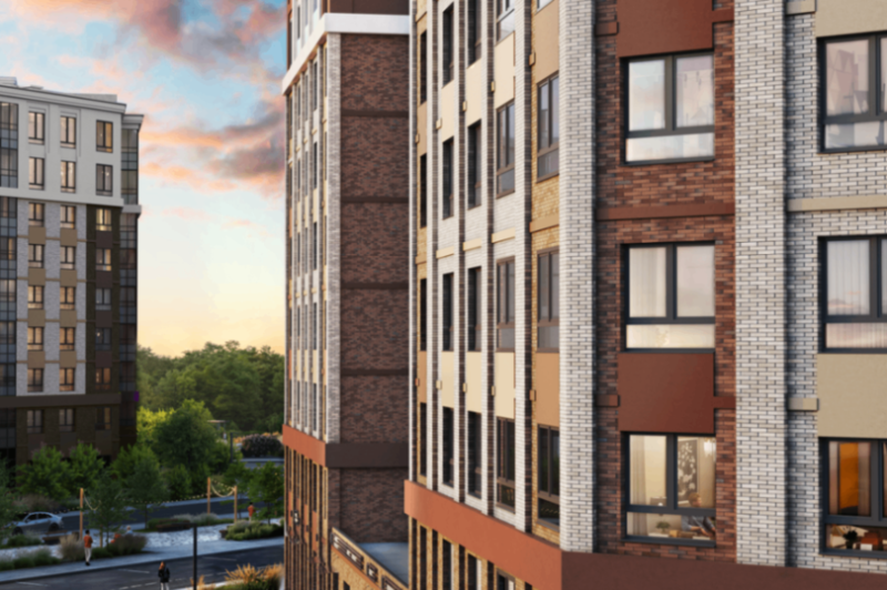 Концепция благоустройства выполнена по принципу «двор без машин». На закрытой внутренней территории с собственным постом охраны разместятся детские и спортивные площадки. Живописные пешеходные зоны подчеркнет многоуровневое освещение, а протекающая рядом река Оккервиль разнообразит маршруты для прогулок.