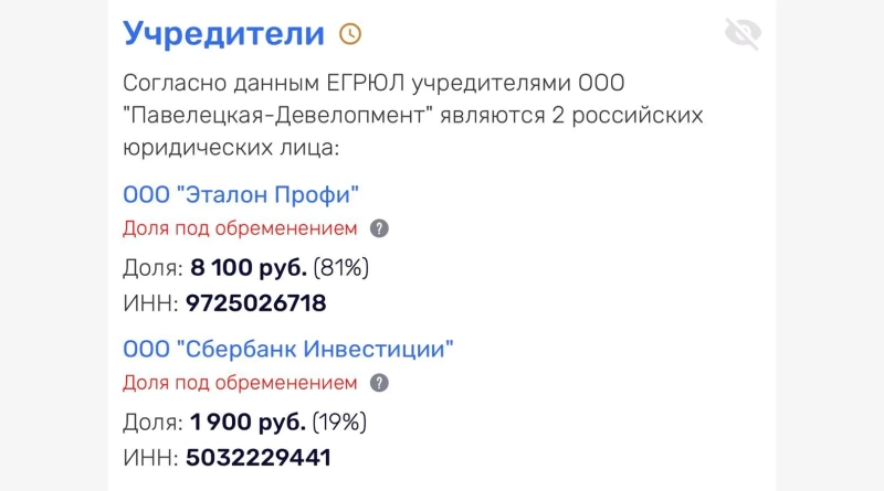 «Сбербанк Инвестиции» теперь владеет 19% ООО «Павелецкая девелопмент» (входит в MR Group). В портфеле этой компании такие организации, как «Сити-холдинг», «Сити2-холдинг» и АО «Эпсилон» (она владеет бывшим зданием Москомархитектуры, которое будет перестроено в бизнес-центр).