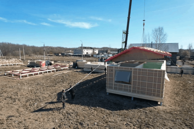 Жильё построим по быстровозводимой технологии, дома будут располагаться на территории малоэтажного жилого комплекса. Стройплощадка обустроена, подведено электроснабжение, подготовлены свайные фундаменты. Часть материалов завезена. Сегодня подрядчик приступил к сборке домокомплектов. Производят их в Вологде. Сдать все объекты планируется до конца года.
