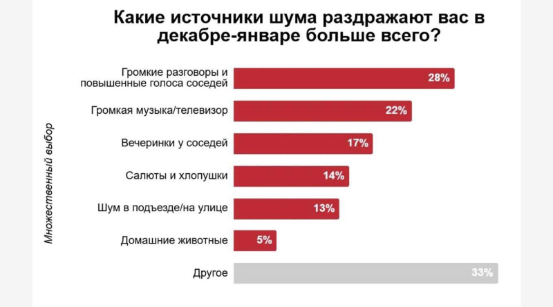 Всего на шум в квартире жалуются почти 70% жильцов.
