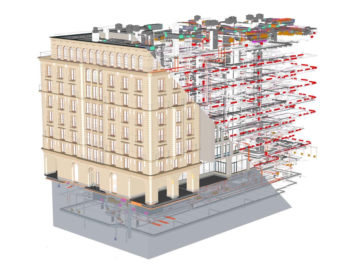 BIM (Building Information Modeling) представляет собой информационное моделирование зданий, при котором создается не просто трехмерная модель объекта, а полноценная цифровая база данных, содержащая всю информацию о конструкции, материалах, инженерных системах и этапах жизненного цикла здания. Создание bim моделей по техническому заданию заказчика позволяет создать точное представление объекта до начала строительства.